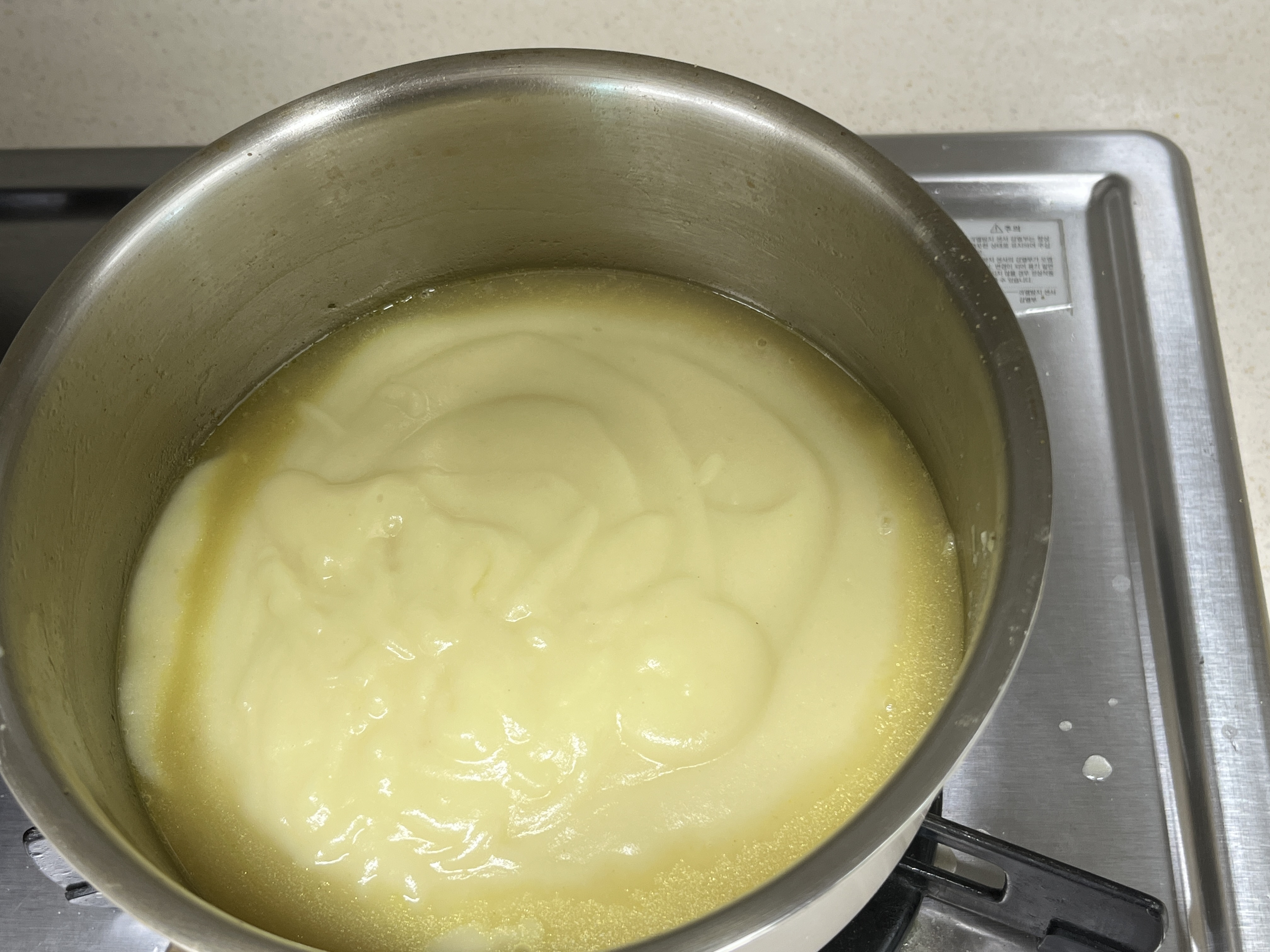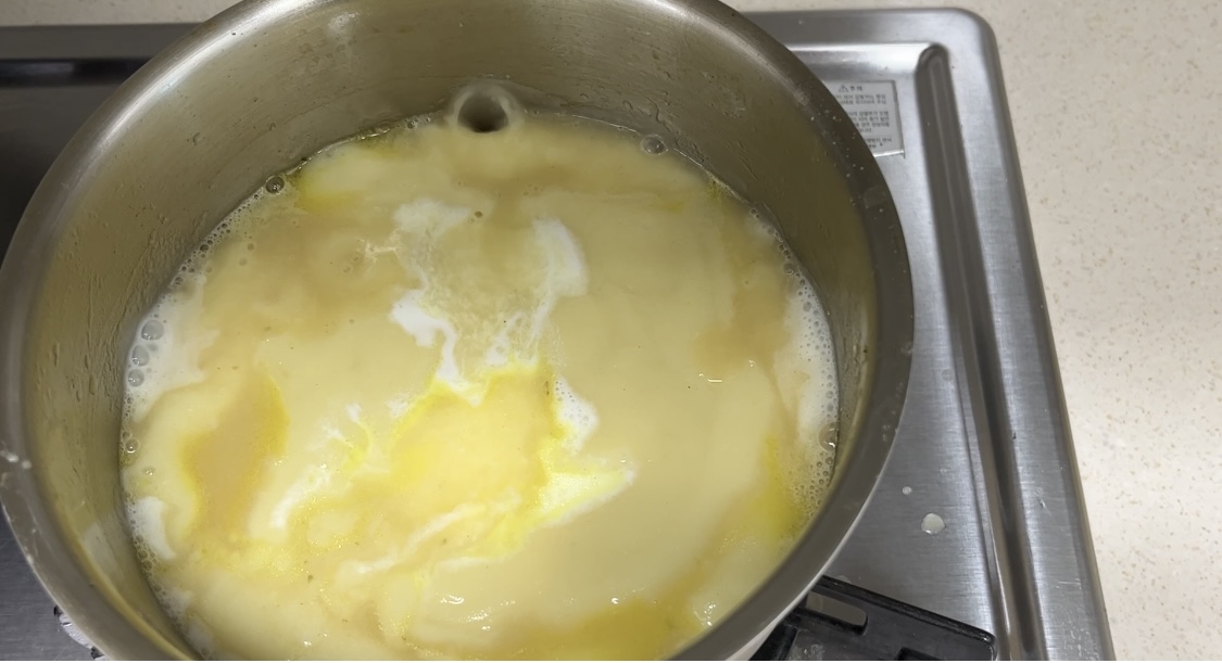 모든 재료들을 잘 섞어줍니다. 불은 중불에서 수프가 눌어 붙지 않도록 잘 저어서 완성하여 줍니다.