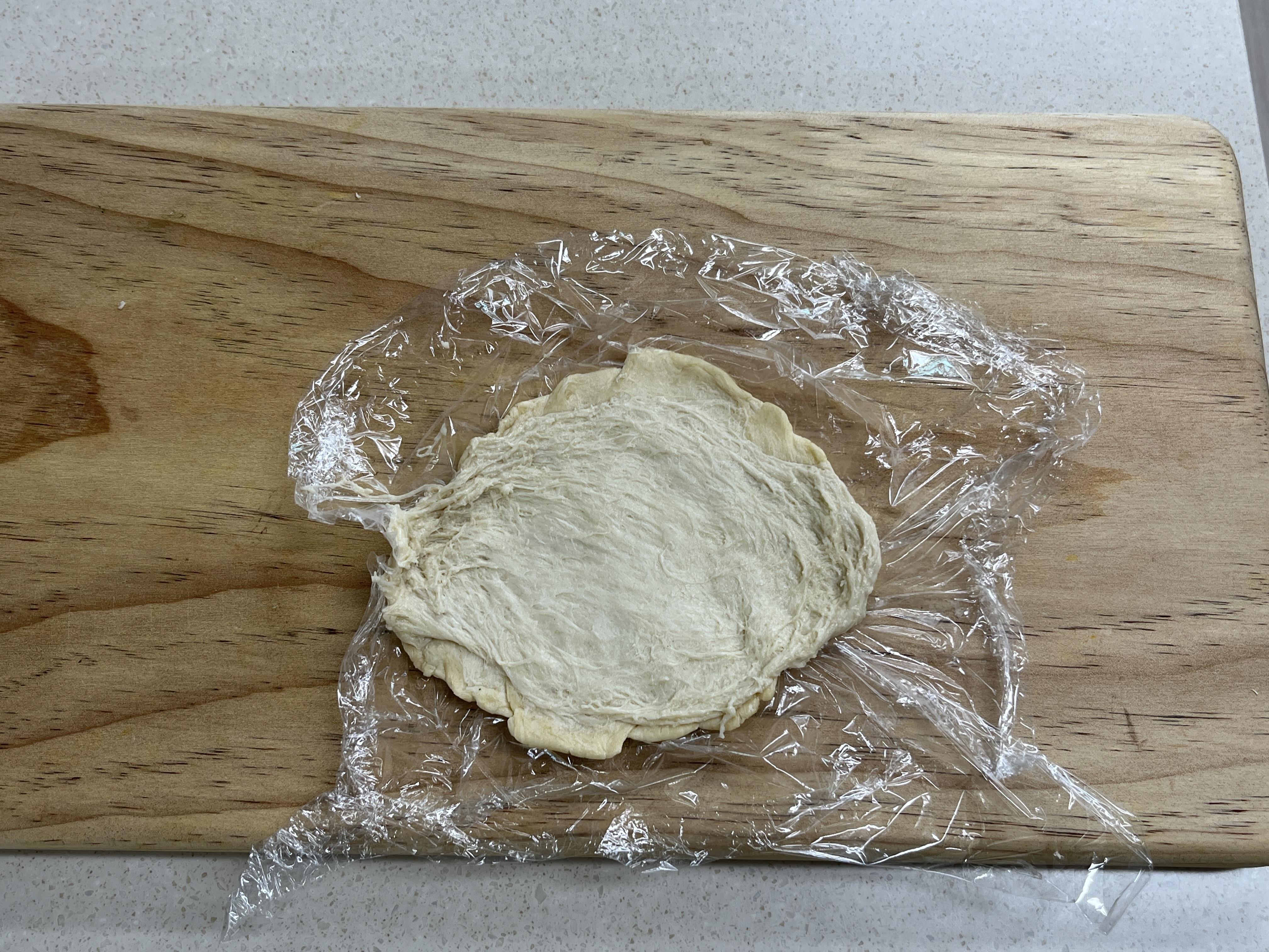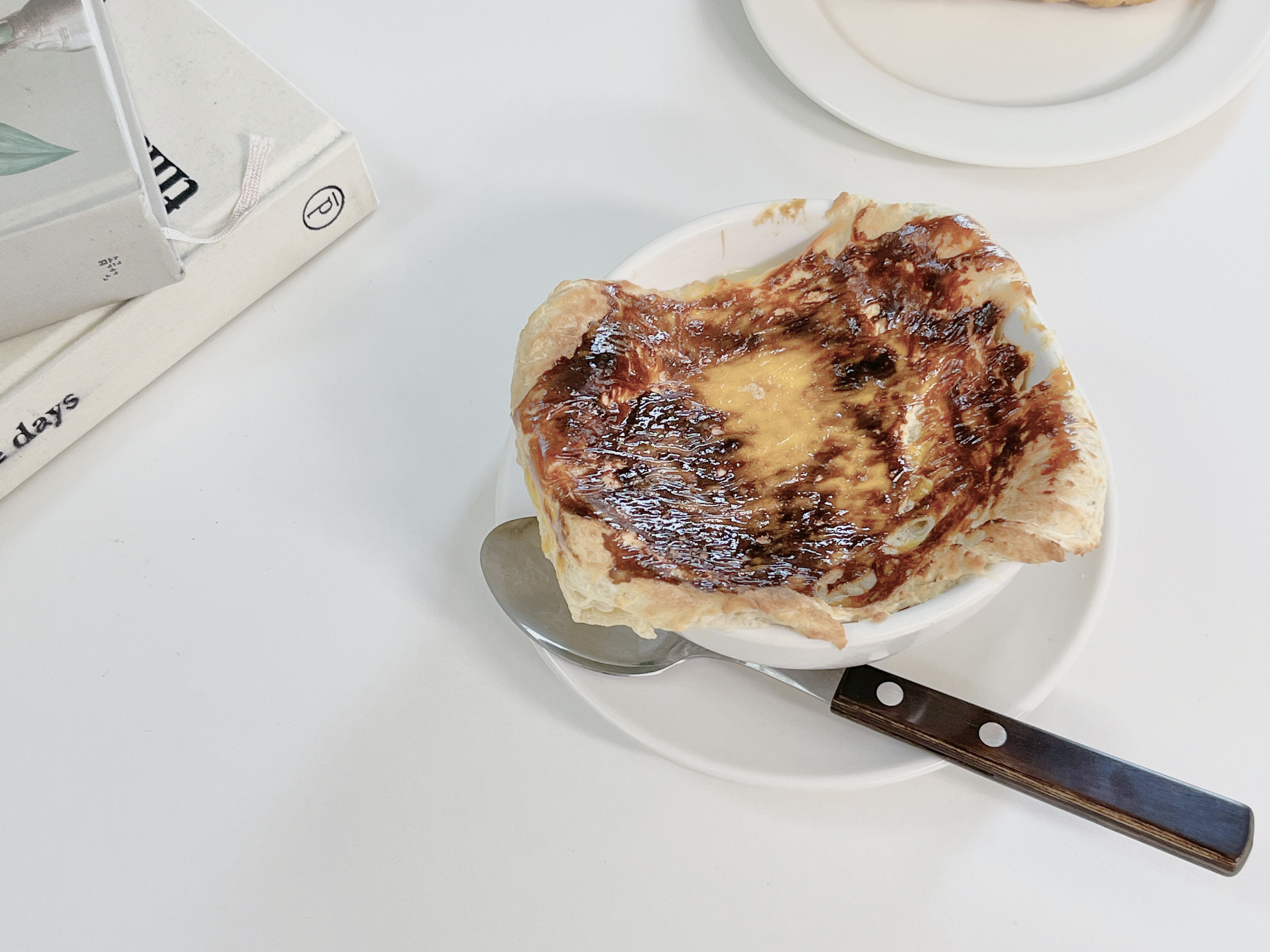 볼에 수프를 80% 담아주고, 볼에 반죽을 덮어서 준비하여 줍니다.
