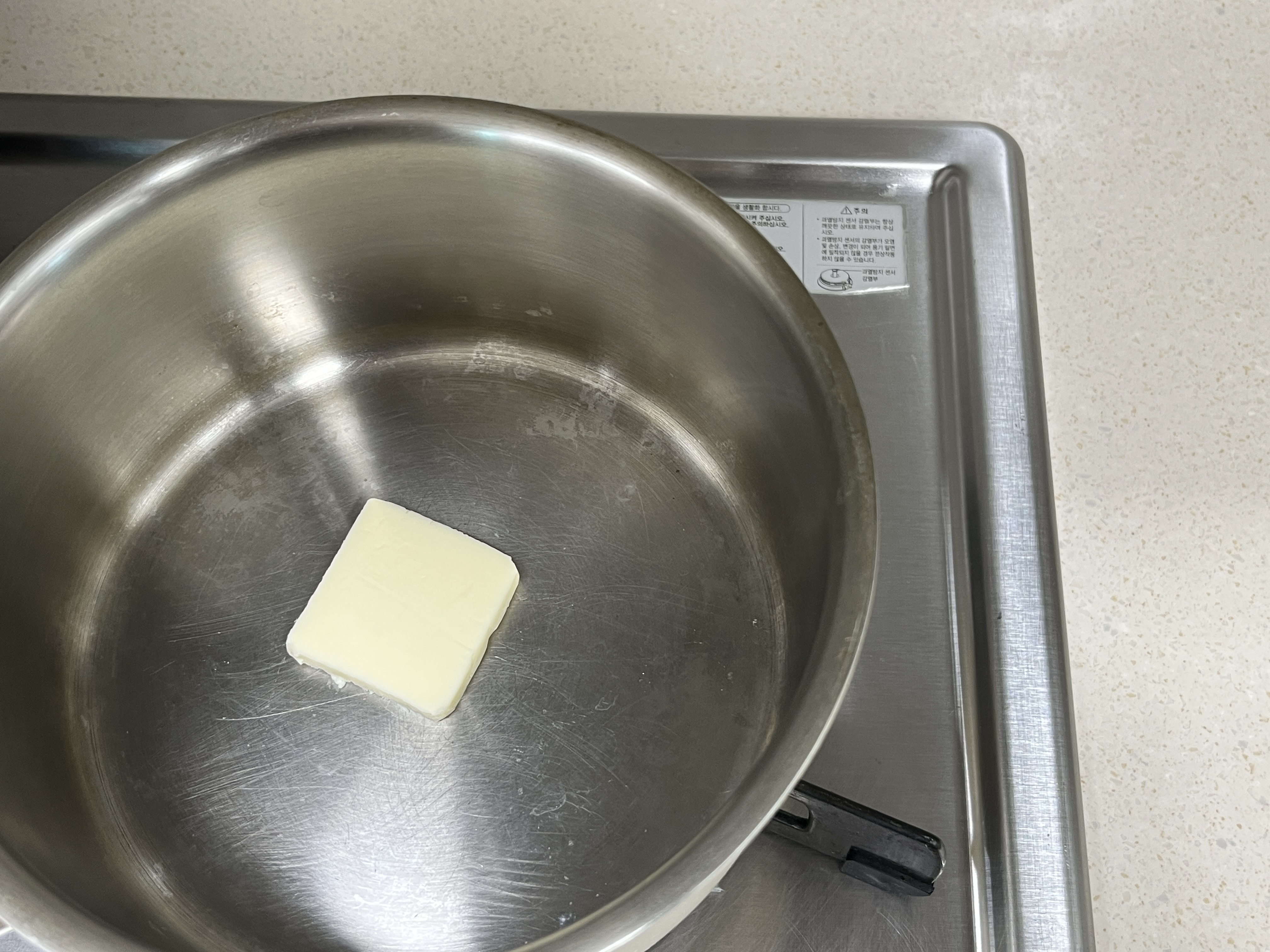 팬에 버터 15g을 둘러 식빵을 넣어 노릇노릇하게 익혀 줍니다.