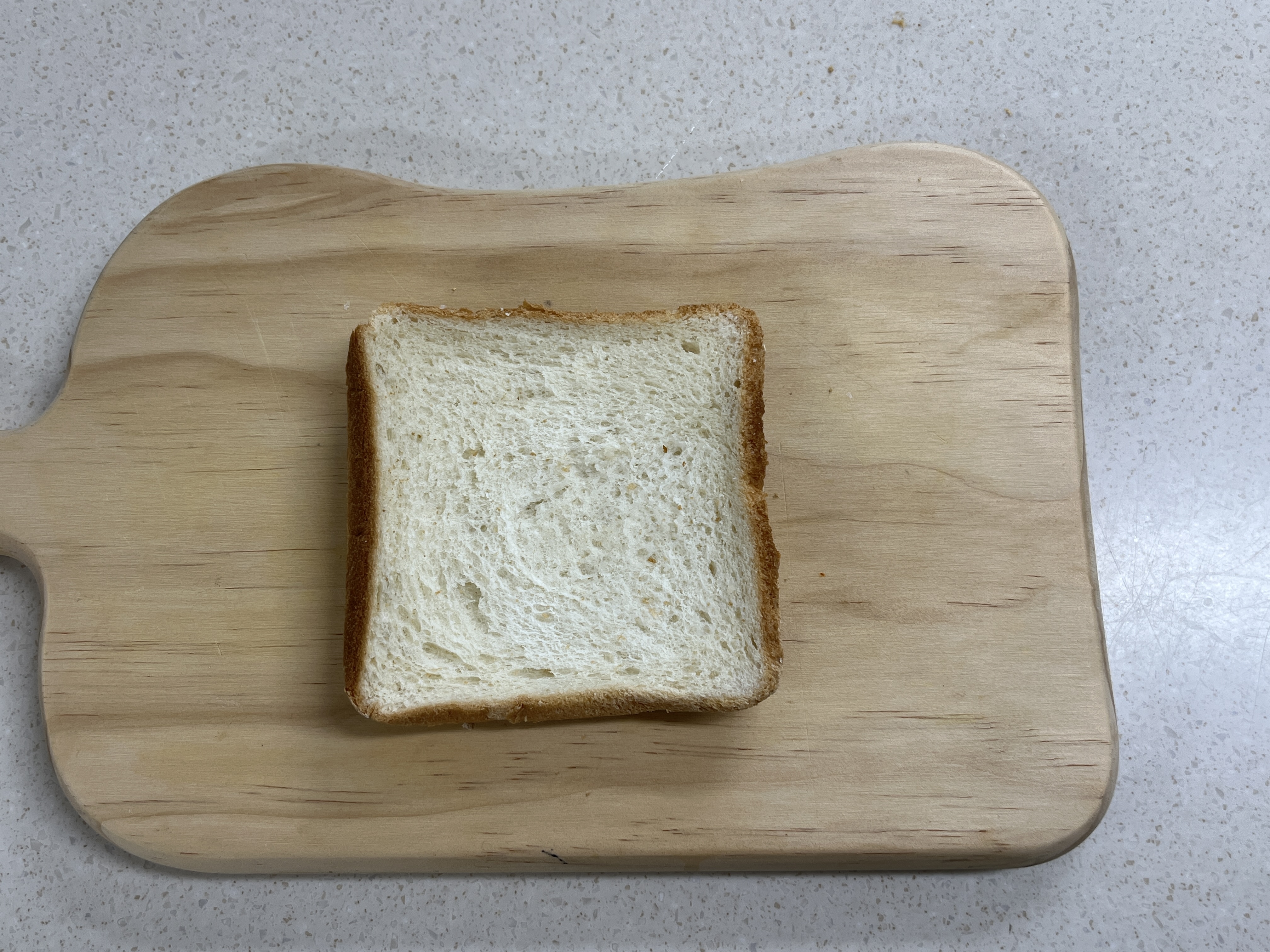 크루아상 반죽은 실패하여 식빵으로 크루통을 만들어 줍니다. 식빵 1개를 준비하여 깍둑 썰기로 잘라서 준비해 줍니다.