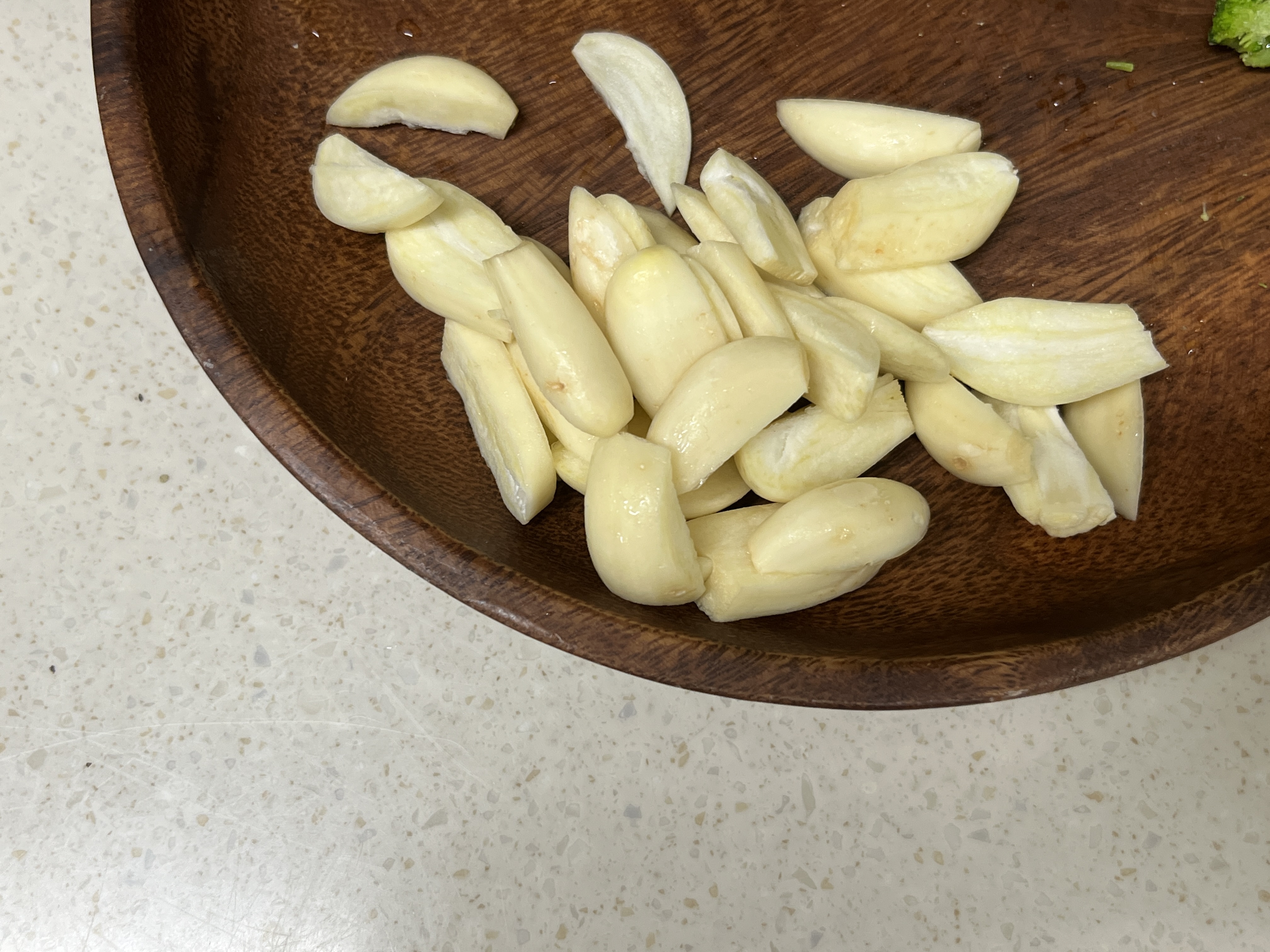 마늘 8알은 얇게 채를 썰어서 준비하여 줍니다.
